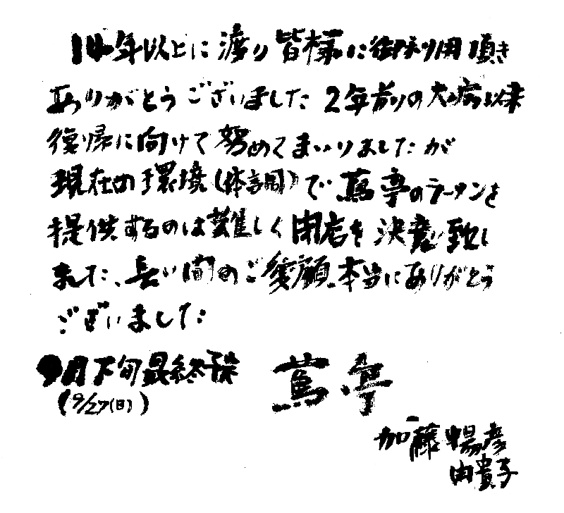 閉店してしまったんですか〜