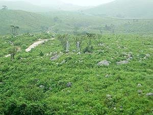 ↓ 草がいっぱいの台地に岩が下から生えてきたように 突き出ている。墓石のようでもあり、不思議な風景だ。 ![]() を往復し、最後に「冒険コース」というところに行ってみた。柵があり、それにつかまりながらでなければ進めないようなところで、距離は短かったがなかなかおもしろかった。 秋芳洞を出ておみやげ屋が並ぶ(行くときはまだ店が開いていなかった)路地を歩いて車に戻り、秋吉台の展望台へ向かった。秋芳洞はこの辺り一帯の洞窟の一部であり、この秋吉台の下も洞窟になっているようだ。鍾乳洞の中と同じような材質の岩が草の間から突き出ている、何とも不思議な光景である。 最初の計画ではここで昼食だったのだが、かなり予定より早く、ちょっと足を伸ばして予定にない青海島まで走って昼食にすることにした。いつもこんな風に行き当たりばったりの我が家の旅行だが、予定を削ることは多いが、追加するのは珍しい。これも早起きしたおかげだ。 |