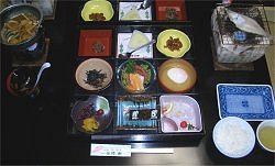 チェックイン後は宿の近くを散策してみる。このときはもう雨もあがっていて、のんびりと歩くことができた。このホテルには無料貸し切り露天風呂があり、早速予約して夕食後に入ってみた。一度ホテルから出て外湯の感じで行くのだが、7〜8人のグループでも余裕で使えるような広さで驚いた。食事もまずまずで、従業員の対応も良く、満足度は80%くらいだった。![]() ![]() ↑ 左 殿町通りの白壁 右 夕食 この後も続々と出てきたが、ヘルシーな感じだった。 |