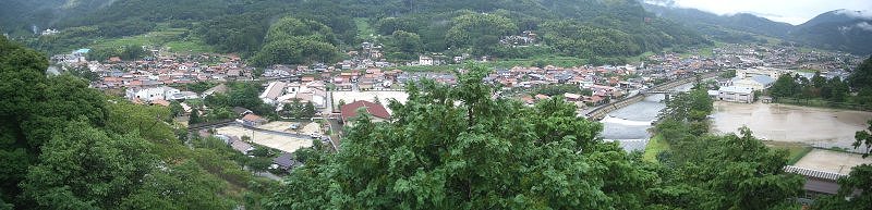 ↓ 稲荷神社の駐車場から津和野の街並みを見る。この範囲に収まってしまうような小さな町だ。![]() |