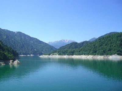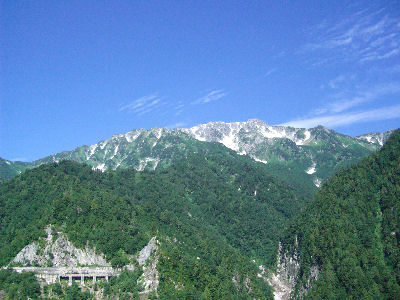 8月6日 今回の旅行で今日だけが自然を見る観光で、この日だけは天気がよいことを祈っていたが、朝起きた時点から真っ青な晴天。高地ということもありまぶしいくらいだ。そんなわけでいつになく早い取り組みで、8時にホテルを出発。こういう場所だからもっと早くから行動している人もたくさんいるが、それでも全体的にも早い方である。扇沢まで車で行って(事前の調べで無料駐車場があることはわかっていたが、やはり駅から結構遠いのでケチらず有料駐車場に入れる)、関電トロリーバスで黒部ダムまで。電車と同じ方式で電源を取って走るバスだが思ったより速い。バスだから連結することもなく5台ほど連なって走った。なぜ電車でなくバスなのか不明だ。黒部ダム駅に |