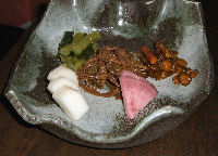 ↓ 雨が収まってから出かけた創作居酒屋の料理。 |