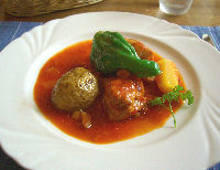 | そんなわけでいよいよ今日の宿に向かう。到着直前になって急に強風が吹き、駐車場に車を入れてチェックインを済まして部屋に入ったときには猛烈な雷雨となった。一部被害があったほどだったのだが、夕食に出かけるときには雨風ともに収まった。本当に天気には恵まれている。 | ![]() |
