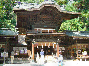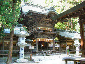 写真左右それぞれ上から 「上社前宮」「上社本宮」「下社春宮」「下社秋宮」 の鳥居と幣拝殿。左の一番下は秋宮神楽殿 その後は諏訪へ。宗教心も何もない自分が何のためにいつも神社や寺ばかり行くのかよくわからないが、今年は武田信玄がメインの旅行で、その信玄が信仰する「諏訪大明神」であるから、一応全部見ておこうということで、ここでは諏訪大社の「上社前宮」「上社本宮」「下社秋宮」「下社春宮」とフルラインナップで拝んできた。「諏訪大社」という一つの神社(?)に4つもの「社」があるのはとても珍しいと思うのだが、その関係はよく知らない。「上社」と「下社」という名前から、何となく「上社」の方が地位が上という印象を受けるのだが、実際に行ってみた感じでは「下社」の方が造りも立派で人が多い。特に「上社前宮」などは非常に寂しい場所にあって、ほとんど人もいない。写真の鳥居から本殿まで100m近く歩くのだがその間に普通の民家があったりするのだ。帰ってきてから調べてみると、「上社」のご神体は現在は「前宮」にはないのだそうだ。また「下社」のご神体は時期によって「春宮」と「秋宮」を移動するのだそうで、正月の時期は「秋宮」にあるのでこちらで初詣が行われるらしい。実際に行った印象としては「下社秋宮」が一番のメインかな、と感じる雰囲気であったのだが、そういうことも関係しているのかもしれない。 |
