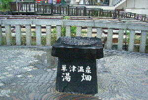 軽井沢からは「白糸ハイランドウェイ」という有料道路を走ったが、途中に「白糸の滝」というところがあったのでちょっと寄ってみた。迫力はないが細く繊細な滝がたくさん並んでいるという感じでなかなか綺麗であった。 これでもう寄るところはなく今日の宿泊地である草津温泉へ。到着したホテルは予想とはかなり違い、フロントの雰囲気も部屋も気分的に盛り下がるものであった。そんな部屋にいても仕方がないので目の前にある「湯畑」を見に行く。木枠がずらりと並んだ光景は圧巻であるが、その中をお湯が流れているのを見ることができると思ったのにビニールのカバーのようなものがかけられていてちょっとがっかりだった。湯もみのショーも時間が合わず、周りをぶらっと歩いただけでホテルに戻った。これを源泉としているホテルということで、風呂 |