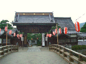 そのセットの建物以外に何も見るものがない。「堀」の外側に並ぶ売店群の中に展示コーナーがあったが、前日の「風林火山博」を見てきた者にとっては何もないに等しい。そんなわけで、予定ではここでもう少し時間を使うはずだったのだが意外と簡単に終わってしまった。しかし、甲府市内で費やした時間は、元々は前日に済ませる予定だったものだから、その後の日程にとっては良い結果となった。← 武田信玄公の墓。誰もいなくてひっそりとしている 風林火山館入口。武田屋敷のセットだ。→ |