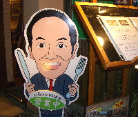 夕食は「どげんかせんとい館」という地鶏と宮崎牛が両方味わえる店に行った。いわゆる「じとっこ」の炭火焼きと宮崎牛が両方メニューにある店は少ないらしく、店名も含めて迷わず決めていたのだが、明石家さんまと木村拓哉の「さんタク」という正月番組に使われた店だということが行ってからわかった。食事の中盤以降、それを目当てに来た若い女性3人組が「キムタク」が座った場所に座って大はしゃぎだった。地鶏の炭火焼きは以前食べたことがある(地元ではない)のだが、「歯ごたえが良い」というと聞こえはいいが「黒くて固い」という印象だったのだが、本物を食べて評価が全く変わってしまった、というほど美味しかった。それに比較して、宮崎牛はフィレとサーロインを少しずつ食べたが、どこの牛もそれほど変わらない、という印象だった。デザートのマンゴーは美味しかった。 夜寝る頃、激しい雷雨になってホテルの前の大きな通りの街頭が消えた。明日の天気はどうなのだろうか。 ↓ 入口にある知事の絵。いろいろな特産品についているマークと同じ感じだ。 ↓ マンゴーの実とマンゴーシャーベット![]() |