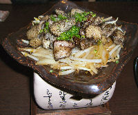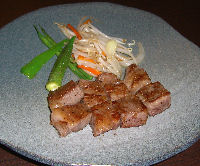 | ↓ 初めて食べた「焼き枝豆」 ↓ 名物「バームカツ」 ↓ やや期待はずれだった「黒豚の角煮」 |