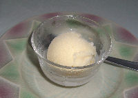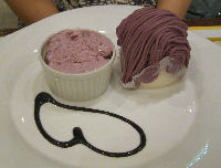 | ↓ 左 抜群に美味しかった「大根せんべいと黒豚みそのサラダ風」 ↓ 妻の希望で芋製スィーツの店へ。アイスはやはり少し変わった食感。 ↓ |