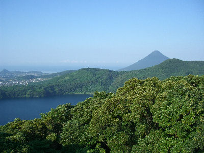 | 8月5日 朝食は8時からにしていたので、7時くらいから「遊歩道…部屋の案内図にはそう書いてあった」に行ったのだが、あまり整備されていないかなりの坂道が待っていた。朝の散歩としてはややきついが、めげずに展望台まで行って見ると、そこからの景色は開聞岳も見えるなど抜群であった。前回来たときには「長崎鼻」から見る「正統派開聞岳」だったが、こういう景色もなかなか良い。大隅半島方面は朝日がまぶしくてはっきり見えなかったが、錦江湾もはっきりと見える素晴らしいロケーションだ。もっと整備して観光客を呼べばいいのにと思ってしまう。結局50分近く散策して朝からかなり疲れてしまった。朝食は和定食で、少しずつ9種類用意されたおかずはすべて美味しかった。どうやら料理は良いようだ。 チェックアウト後、干潮なら歩いて渡れるという「知林ヶ島」に行ってみた。ひょっとしたら、と期待して行ったのだが無理だった。それにしても指宿はどこに行っても人がいない。前回来たときもそうだったのだが、あれで大丈夫なのだろうか。 |