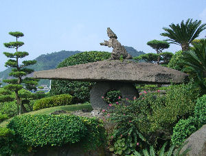 8月6日 今日は昨日行けなかった島津家別邸「仙巌園」を見て、霧島経由宮崎行きという予定だ。仙巌園は市内からそれほど遠くなく、8時半からだということで8時15分くらいにチェックアウトする。途中「ザビエル上陸記念碑」に寄ったので少し遅れて8:50頃到着。早い時間なので我々より早い客は数名だ。「磯御殿」は案内付きで抹茶のサービスなどもあり思いの外時間がかかる。なかなか美しい庭園だったが、借景庭園の目玉である桜島がかすんで見えなかったために本来の庭の美しさを体験できなかった。なお、パンフレットに写っている写真は電柱や電線を消す加工をしているようだ。残念なことに普通に見ると電線がとてもじゃまだった。 その後入った「尚古集成館」が思いがけなく見応えがあり(昨日の「黎明館」といい、ここの施設といい、歴史には事欠かない。北海道にはあり得ないことだ。)、ここで合計2時間使った。 |