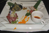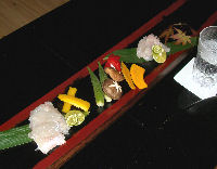 今日の宿は全室「離れ」というところなので早めに行ってくつろぐことにする。HPなどを見ても場所がわかりにくく(わかりにくいと書いてある)、まだ比較的新しいのでナビでも検索できないのが不安だったが、思ったほど迷うこともなく到着。だんだん細い道になり、最後は砂利道で「こんなところにあるのか?」と思うようなというルートだが、山の中の砂利道の終点というところにあった。ただ、「全室離れ」というよりも「離れ」しかなくて母屋がないという造りで、最初どこに行ったら良いかわからなかった。外界から完全に遮断される部屋はほんの少しの部分で、トイレに行くにも内風呂に行くにも外とつながっている廊下を歩くことになる、という不思議な造りだ。最初は全て開け放たれていて、渓流沿いに作られた露天風呂など全く初めて体験するような宿泊施設に驚いた。露天風呂は2人が余裕を持って入れる大きさで、内風呂もそれよりも大きいものだったり、ドラム式洗濯機や電子レンジ、ワインセラー(中にはびっしりと入っている)があったりなど、至れり尽くせりの設備にも驚いたが、何よりも携帯が「圏外」というのが最も驚いた。自分が携帯を持ってから圏外の場所に宿泊するのは初めてだ。夕食は専用の別棟でいただくのだが、そこまでは歩いていかなければならない。実に非日常的な時間を過ごすことになる。 ↓たくさん出た夕食の一部。馬刺は抜群だった。 ![]() |