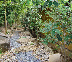 | ↑ 最初の入口。いわゆる「門」のようなもの | ↑ 左の入口からいわゆる「玄関」までの道 | ↑ 右に見えるのが「玄関」だが、中に入らず左側の縁側 のようなところにも行ける |