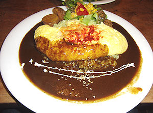 | 場券をくれるだけだ)。まあ、そんなことで次に移動してまたまた観光客になる。この「拾ってきた家」はおそらく後半の物語なのだと思うが、何となく知っている感じがした。 結局この2カ所でけっこう時間を使って、富良野市内に戻ったときは6時近くになっていた。夕食は何にするか決めていなかったが、久しぶりに「唯我独尊」のカレーを食べることにした。この店は19歳の時(浪人中)、1週間に2〜3回は来てマスターと話をしながら2〜3時間音楽を聴いた店だ。残念ながらマスターはいなかったがとても懐かしい感じだった(店の雰囲気はけっこう変わってしまったが…)。オムカレーを食べたのだが、この店は今富良野で売り出し中の「富良野オムカレー」には認定されていないようだ。認定されるためには「富良野産の米を使う、中央に旗を立てる、富良野産のチーズかワインを使う、ふらの牛乳とこだわりの一品料理をつける、料金は1000円以内とする」という条件があるのだ。独尊のオムカレーは旗も立っていないし、牛乳もない。それに1000円以内でもない。しかし、美味しかった。 |