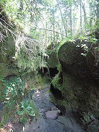 | チェックアウト後は倶知安方面にあるパン屋さんで少しパンを買って、その後は一気に支笏湖へ向かう。1週間ほど前の大雨と昨日の雨で、国道の一部が破損して迂回する場面もあったが、それほど遠回りでもなく順調に支笏湖に近づくと徐々に晴れてきた。途中で道の駅「フォーレスト276大滝」に寄ったが、以前とかなり雰囲気が変わっていた。まだあまりおなかがすいていなかったのでキノコ汁も食べず、トイレに寄っただけだった。その後「苔の洞門」にも寄ってみたのだが、歩きにくい道を1kmくらい歩いた割に、肝心の洞門の入口しか見ることができなくてちょっと期待はずれだった。昔は奥まで入って行くことができたのだが、10年くらい前に崩落があって今は入口だけだ。支笏湖はあまり広い湖畔がないので、ゆっくり景色を見るという感じにならない(有料駐車場はあったが、ちょっと景色を見るのに有料というのは…)。男性的な湖はけっこう好きなのだが、丸駒温泉側からしかゆっくり見たことがない。そんなわけで道路の路側駐車帯に停めてちょっとだけ湖を見てすぐに千歳へ。千歳ではツタヤのDVDをポストに入れなくてはならないのと、昼食を摂る予定だが、昼食のあては全くない。結局は何年ぶりだろうというハンバーガーを食べることにした(6月に朝マックを経験したが、朝はハンバーガーがな | ↓ 苔の同門入口の展望台から![]() |