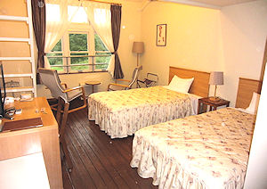 という感じの朝食は、きっと外で食べたら最高だっただろう、とかえすがえすも残念であった。 今日もやはりのんびりすることが目的だから朝食後もゆっくりしてチェックアウト時間ギリギリの10時頃ホテルを出た。部屋は隣の音が気になる造りで(食事の時にみんなで和気あいあいしていたので文句も言いづらい)、大変良いとは言えないが、それを差し引いてもご主人の人柄でとても満足できる宿だった。昨日の宿とは全く違う雰囲気で、わずか2泊3日の旅行だがけっこう楽しめた。 ← 焼きたてパン(暖かくなかったのがちょっと残念)を中心とした洋食 |