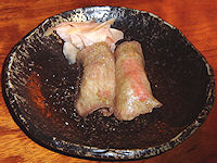 さて次は七夕祭り、ではないのだ。電話で予約したのでまずは食事に行かなければ。「べこ政宗」という店で、祭りをやっているアーケード街の中にある。目的は北海道ではあまりお目にかからない分厚い牛タン焼きだ。みそ味と塩味を頼んだが、順当な塩の方が美味しいかもしれない。ちょっと驚いたのはお通しで出てきた「トロ牛タンのにぎり寿司」が非常に美味だったことだ。酢飯と相性がぷったりでとても美味しかった。その他では「横手焼きそば」が色だけでなく味もとても濃いということにも驚き、あぶら麩の卵とじの美味しさに感動した。あれなら丼にしても美味しいだろう。何となく「ケンミンショー」を思い出した。 |