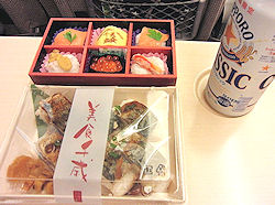 | 結局飛行機は少し遅れて、千歳空港に着いたのは18:40頃だった。指定席とはいえ弁当選びに長時間かけるほど余裕たっぷりというほどではないから、適当に選んで列車を待った。待っている間に、「今日はもう車に乗らない」ということを思い出し、缶ビールも買って列車に乗り込んだ。時間もあまり早くないので比較的空いていて(昨年はとても混んで指定席の通路にもたくさん人がいた)、乗ってすぐに缶ビールを飲み、弁当を食べた。いつも車で移動する旅行で、そのほうが好きなところに行けるが、列車を使ってビールを飲んだり弁当を食べたり、というのも悪くはない。 さて毎年のことながら旅行最終日のこの列車では「来年はどこに行こうか」と考える。来年の大河ドラマは福島のようだから、今年と同じく大河ドラマとは関係ない旅行になりそうだ。 |