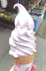 | 大内宿は昔の宿場街道を再現・保存している地区で、長ネギ1本で食べるそばが有名なようで、食事をする店もほとんどがそば屋のため、そばアレルギーの自分としてはあまり気が進まない場所だったが、他に行くところもないので寄ってみることにしたのだ。地図で見ると細い悪路のようだったが、観光地として整備されているので問題なくスムーズに走ることができた。一応端まで歩いて、ちょっと小高い丘に登って全景を見たりした。なかなk趣はあるがそれ以上のものはない。そばが有名なせいか唐辛子系のお土産もあり、一味唐辛子を一袋買ってみた。その後「山ぶどうソフト」1時間程度で切り上げた。今年の旅行で4種類目のソフトはなかなか美味しかった。そばばっかりだったのと昼には少し早いということで、時間的には今日の昼食も高速のSAでの食事となりそうだ。 | ![]() |