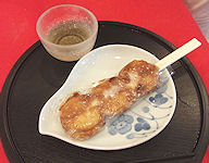 | 数だった)、茶屋で団子を食べた。一人1本は多いと思って二人で1本にしたが、別々でも良かったかもしれないという量だったが、もうすぐ昼ご飯の予定 |