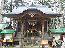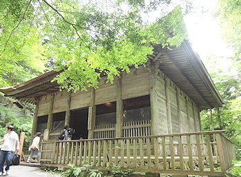 かったのに、やはり「世界遺産」というネームバリューは凄い。全体的に金色堂の付近だけが人が多いという感じで、残念ながら金色堂はあまりゆっくり見ることができなかったが、他の場所は人も少なくゆっくりと見ることができた。前回は出張のついでに見に来たのであまり時間がなく、ゆっくり回らなかったが、今回はここがメインの一つだからいろいろなところを見て回った。しめ縄が輪になっている白山神社や、その近くにある十二支ごとの小さな守護神社があるのが印象的だった。その後は登ってきた道の途中にある弁慶堂に寄ったあと(ここも凄い人の | |