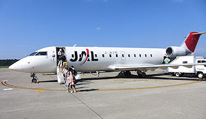 ![]() ↑ 50人乗りという小さな飛行機だが一応ジェット機だ。バスに毛の生えたような大きさだが、思ったよりは快適だった。 |