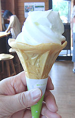 よると、この多くの島々が天然の防波堤のような役割を果たしたのだとか。どちらの場合も自然の力は偉大だ。というわけで松島を後にして一路会津に向かう。松島海岸ICで高速に入ると会津若松ICまで一気だ。けっこう距離が長く、明日もここまで戻ってくるから、今日と明日が土日だったら高速料金半額だったのだが…。しかし、土日の高速は渋滞が怖いから高くても平日でよしとしよう。そのあたりの事情は2003年旅行記(渋滞で伊丹空港発の飛行機に乗れず)・2007年旅行記(飛行機出発の10分前に羽田空港到着)を参照して欲しい。 途中福島県に入ってからのSAでももソフトを食べたが、写真を撮り忘れてしまった。この旅行3種類目のソフトクリームだが、ずんだソフトよりはかなり美味しかった。 |