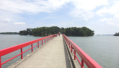 | 洞窟群」といわれる岩肌を削って洞窟のようにした納骨や供養のための施設がある。松島は古来「奥州の高野」と呼ばれ、浄土往生を祈念する神聖な霊場だったということで、厳かな雰囲気だ。で、肝心の瑞巌寺だが、参拝料がちょっと高いと感じて(700円)中には入らなかった。その後隣にある「円通院」にも行ったが、昼食の時間ということもあり、ここも入口で終わりにした。というわけでこの後は昼食だ。ガイドブックによれば松島ではあなご・牡蠣・寿司が美味しいそうだ。いつもの「昼は少し軽めに」ということとその土地のものという両方を満たすために「松島さかな市場」という所に行って「松島かきバーガー」と「めかかつバーガー」を食べた。めかかつとはめかじき(マグロ)のフライのことだ。まあそれなりの味だった。その後は「みちのく伊達歴史館」という所に行こうと思ったのだが入館料が高いのでやめにして、すぐ近くの店で「ずんだソフト」を食べた。まあよく何でもソフトクリームにするものだ。枝豆のソフトクリームなんであるとは思わなかった。味は枝豆を口の中に入れた状態でソフトクリームを食べた、という感じだ。まずくはないが、やはり果物系のほうがいい。あなごを食べないのもやや心残りだが、今日の夕食はきっと豪勢だからこれくらいにしておいた方がいいだろう。 長い橋でつながった福浦島に行ってみることに。橋の通行は有料で200円かかるが、その程度なら行かないという手はない。橋を渡って、思ったよりは距離があったが展望台の方までずっと歩いてみた。 今回船から見た島の中には津波のために一部崩れてしまったものもあるようだったが、多くの島はほぼ無傷で、何といっても松島湾沿いの建物にもほとんど影響がなかったようだ。聞くところに |