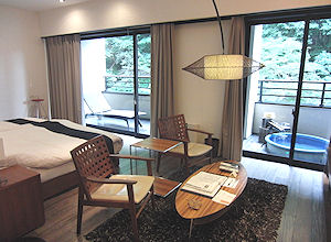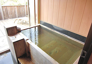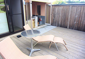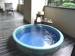 ![]() 半露天の部屋風呂とその前のテラス