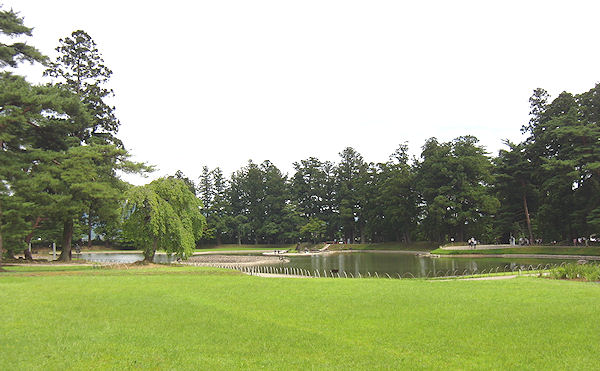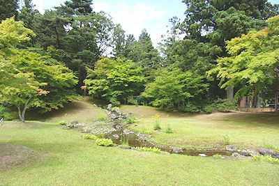 | なく活気がない。座敷に座って待っていると、何と少し前にシャリが切れて今ご飯を炊いているところだと言われる。そんなに待っていられないので仕方なく店を出て、どうしようかと迷った。出した結論は毛越寺に入ってすぐある「お休み処」で餅料理のセットを食べる、ということになった。しかし、何と何とその店は移転になったとのことで、跡にできたのは蕎麦屋だった。諦めるしかないので、仕方なく毛越寺を見てしまうことにした。美しい庭だが、天候がイマイチだ。中尊寺のような所は少しどんよりしている方が雰囲気が出るが、庭園はバックが青い空の方が明らかに美しいから、ちょっと残念だった。 | ||