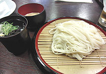 稲庭うどんの店「無限堂」でざるうどん。喉ごしが良く美味しい。 |