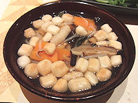 さていよいよこの旅行最後の宿に到着だ。結婚30周年の記念で一番お金をかけた「庄助の宿 瀧の湯 松島閣」だ。この瀧の湯は3年前に新潟メインの旅行で最後の米沢に行く途中で1泊したことがあるのだが、その時は「部屋にこだわらない方へ」というキャッチフレーズの格安だが本当にひどい部屋だったので、今年はそのリベンジなのだ。前回は鍵をもらっただけのフロントに行くと、奥のソファーに案内されてチェックインの手続き。冷たい抹茶とお菓子が出てきてから結構待つが、実はその近くに試飲用の冷酒が6種類用意されていて、抹茶と一緒に付いてくる杯で自由に飲めるのだ。実は大浴場にもお酒が置いてあるのだが、さすがは「庄助の宿」というだけはある。このためにわざと時間をとっているようにも感じたが、急ぐこともなく4種類ほど飲んで満足。 そしていよいよ部屋へ。離れと言っても別棟になっているのではなく、専用のフロアにある部屋ということになっているようだ。別棟だと何かと面倒だからその方がいいと思う。部屋はさすがに素晴らしい。広々としたベッド、50型くらいの大きな液晶テレビにDVDプレーヤー、間にも小さなテーブルがある一人がけの椅子が2つ、そしてそれとは別に広い和室があって、そこには椅子に座る大きなテーブルが置かれている。夕食はそこで食べるということで、よくある「御食事処」が部屋の中にある感じだ。朝食もそこで食べられるのだが、朝はゆっくりしたいので餅が魅力のバイキング |