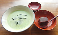 ![]() ↑抹茶と水ようかん ↓試飲用の冷酒 ![]() |