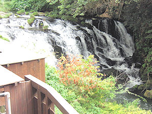 ↓ 大浴場の露天風呂から見える滝![]() |