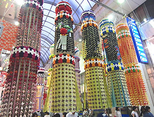 | そして食後はいよいよ七夕祭りだ。来るときにも少し見たが、じっくり見ると実に凄い。いままであの吹き流しはできあがっている模様付きの紙などをただ切って作ったものだと思っていたが、何と一つ一つ手作りだ。しかも非常に細かい仕上げになっている。地区ごとに金賞から銅賞まで表彰されるらしい。それにしてもものすごい数で一つ一つもとても大きい。それらを遠くから眺めるのではなく、手に取って見ることができるのがまたいい。東北の祭りの中で一番期待していなかった七夕祭りだがこんなに素晴らしいとは。うれしい誤算だ。 ホテルに戻る途中、例によってコンビニで飲み物を買って、今日のホテルにもある大浴場へ行く。今年の旅行は全てのホテルに大浴場が付いている。部屋のユニットバスだとシャワーしか使わないが、大浴場だとゆっくりとくつろいで1日の疲れが取れる感じだ。最近はこういうホテルが多くなってとてもいいことだ。 |