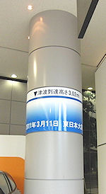 ![]() ↑ 津波ラインが書かれた柱 |