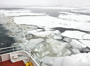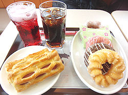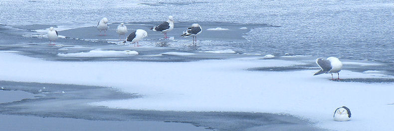 | ことができた。出港まで時間があったが、港内に浮かぶ氷の上にいる鳥を見たりして退屈はしなかった。 いよいよ船が動き出して、最初のうちは中の暖かい席からの景色を楽しみ、「流氷の近くに来ました」という放送でデッキに出るのだが、みんな一斉に動き出す。寒くてもその方が迫力があるのだ。しかし、20年前と比べると、いわゆる温暖化がかなり進んで、氷の厚さが物足りない。初めて乗ったときは厚さ1mくらいあったが、今日の氷はせいぜい40〜50cmだ。ちょっと残念ではあったが、スキーやスケートでない冬らしい観光をして満足。下船後はすぐ近くにある「流氷硝子館」をのぞきに行ったのだが、気に入ったグラスがあってつい買ってしまった。下船が1時半くらいだから昼食の時間が過ぎているのだが、朝食べ過ぎているので軽くということでミスタードーナツへ。おやつのような昼食の後はまっすぐ温根湯温泉に向かう。 | ↓ ミスドの昼食![]() ↓ 港内の氷の上でくつろぐ鳥たち |