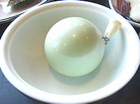 | 「まりも豆腐」なるものがあった。羊羹と同じで、楊枝でつつくと皮がつるんと剥がれる。中身的にはやや緑がかった絹ごし豆腐という感じだが発想がおもしろい。個人的には朝食バイキングの評価ポイントとしてコーヒーの美味しさがあるのだが、今回は部屋に機械で抽出するコーヒーが付いているので、バイキングでは飲まなかった。 部屋で美味しいコーヒーを飲んで、冷蔵庫に入っていたサービスのアイスクリームを食べて…。などなどしていたらあっという間にチェックアウトの時間になってしまった。最近は11時チェックアウトというサービスも増えていて、それに慣れてきたこともあって最後はちょっと慌ただしい感じになってしまった。 まりも豆腐→ |