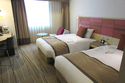 | テルがあった。今日は今年の旅行で唯一の温泉でないホテルだ。けっこう広くて快適だ。とはいえ、旅行最後の夜を部屋でごろごろというわけにはいかないので、荷物を置いて少しだけ休んで一段落したらすぐに出かける。 博多駅ビルは4年くらい前に新しくなって「JR博多シティ」という名称で多くの部分に分かれている。商業スペースの面積は国内の駅ビルとしては全国最大だそうだ。複雑で全てが単純に行き来できるわけでもなさそうだ。このビルの中の「くうてん」というレストラン街にお目当ての「テムジン」があるのだが、まだ夕食にはちょっと早いので屋上の「つばめの杜ひろば」というところに行ってみた。何となく不思議な空間で、ちょっとした飲食コーナーもあるが基本的にのんびりするスペースのようだ。「鉄道神社」というのがあって鳥居もある。その中でも博多市街地を見渡せる展望が良い場所があって、たくさんの人が休んでいた。そこで少し休んだ後、今度は阪急デパート側の地下に行ってお土産などを物色したがそういう場所ではないようだった。 | ![]() ↑ ホテルの部屋。けっこう広い ↓ 新しくなった博多駅ビル。奥行きもかなりある |