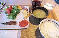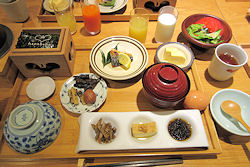 さて、別府に来たら「地獄巡り」というのが定番だが、前回来たときに地獄は行っているので(1カ所しか行っていないが…)、今回は別府はすぐ出る予定になっていて、今日は最初に臼杵に行く予定だ。そしてその後は竹田か長湯温泉というあたりが決まっていない。というわけですぐ出発だがその前にガイドブックで見て実物を見たいと思った「竹瓦温泉」へ。明治初期に創設されたという歴史ある温泉だが、入浴料100円という破格の共同浴場だ。しかもこの時期は朝の6時半から営業している。ホテルを出てから迷うこともなくほどなく到着したが、なかなか厳かな造りで、これで100円で入浴というのがびっくりだ。ちなみ | ↑ 宿泊した「花べっぷ」の外観 ↓ ご飯が美味しかった朝食。画面外にも料理が ![]() |