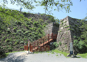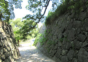 | 写真 左側上段から 北虎口門。いかにも期待できそうな雰囲気が漂う。 天守直前の石垣。さらに期待が高まる。 天守より少し海側にある見奏櫓。