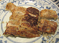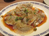 | そんなことをして時間をつぶしているうちに夕食時になったのでテムジンの場所に行ってみるとちょっと並んでいた。しかし、今から店を探す気にもならないのでそのまま並んでいると、以外と早く座ることができた。繁華街ではなく駅ビルということもあって客の回転は早いようだ。 | ![]() ← テムジンの焼き餃子・ピリ辛水餃子・大手羽先 |