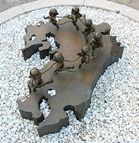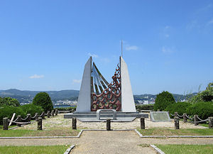 ← 赤い色が印象的な平戸大橋。渡ると平戸市街。 橋の右奥が平戸湾。 ↓ 焼罪史跡公園。世界遺産を目指している地区なので、 |