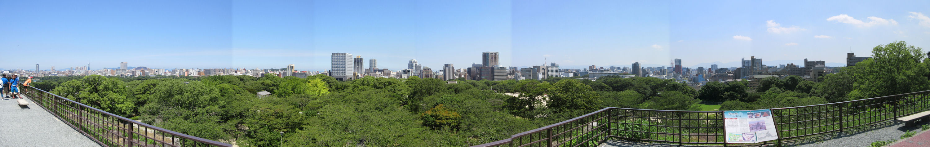 | ↑ 下之橋御門と(伝)潮見櫓 ↑ 天守台への登り口 ↑ 天守台を降りて裏側から戻るところ ↓ 天守台から博多市街を見渡す。左端の方に福岡タワーと福岡ドームが見える。中央が天神から博多駅方面。右端の方はどこかわからない。 |