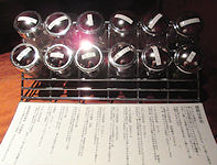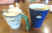 | 雰囲気はそれなりだが、料理の味は良かった。比較的変わったものが出たし、牛肉も3日目になると胃にもたれそう、というタイミングでしゃぶしゃぶはとても良かった。しゃぶしゃぶならもう少し食べられたのに、と思うのは贅沢か。おもしろかったのはデザートの時で、私はコーヒーを頼んだのだが、妻は「嬉野茶」(ハーブティー)を頼んだら、下の写真にあるように12種類の中から好きなものを選ぶシステムだった。 |