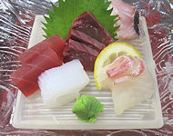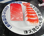 その分運賃はやや安いが、初日から疲れるよりもこちらの方が良かった。 そんなわけで、旭川空港を9時頃出発して、羽田空港で昼食を摂って、午後2時前には大分空港に到着だ。羽田での昼食は「羽田大勝軒」。昨年と今年の出張でも食べたので3回目の訪問となった。これは道外の店としては最も多い。 羽田からの空路はとても天気が良く、外の景色を十分に楽しむことができた。途中、大阪付近の上空では伊丹空港・関西空港・神戸空港が一度に見える場所があった。視界に3つの空港が入るという経験は初めてだったのでちょっと感動した。 大分空港では、荷物を受け取るターンテーブルが回り出すと先頭に右のような巨大鮨が回ってきた。地方によっていろいろな特徴があるものあるが、これはかなり面白い部類だ。それにしても海老はやはり茹でたものが一般的なのだろうか。 |