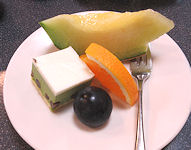 | 夕食は個室の食事処ではなく、「美湾」という広い和風レストランのようなところだった。窓側の席でなかったのが残念だったが、それでもこんでいない限り離れて座るような配慮がされていて、横や後ろなどには他の客はいなかったのでそれなりに落ち着いて食事ができた。質的にどうかと言われるとなんとも言えないが、悪くないレベルだ(もちろんプランが違えば料理も違うだろう)。ここはお品書きがなくて、何を食べているのかわからなかったのが残念だった。 |