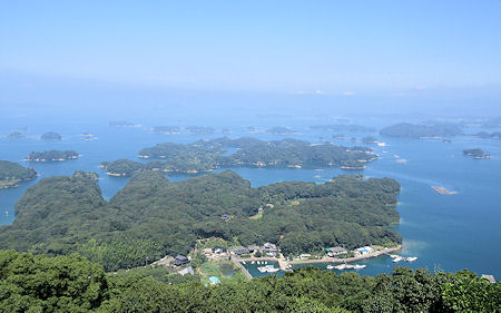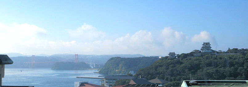 写真下 平戸城最上階から平戸湾を望む。 |