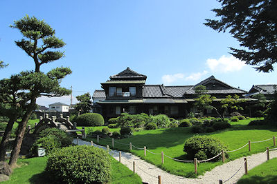 | さて、目的地は九州の石炭王の旧邸宅だ。朝ドラで有名になって多くの観光客が訪れているらしい。鳥栖ICで高速を出て、飯塚市へ。駐車場はちょっと離れていたので暑い中歩くことになった。実はこの日のこの時間帯の飯塚市は35度以上あって、2日目の豊後竹田に引き続き非常に暑い日だった。そして、その旧邸宅に着いてみると確かに多くの観光客が |