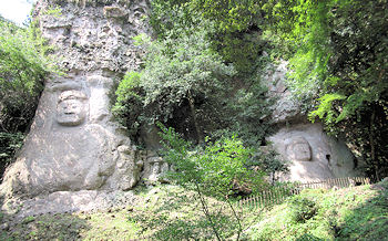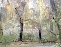![]() ↑ ここの磨崖仏は2体で、手前の方が大きいが痛みも大きい |